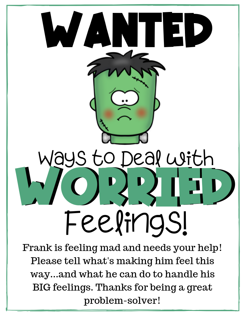 In this non-directive craftivity, kids are given a blank canvas to either write or draw what they think is making Frank worried...and what he can do to deal with it in a helpful way. Simple, easy...yet more powerful than you can imagine. The fun-factor is even upped with the classroom or refrigerator-ready "Wanted Poster" that comes with the resource.