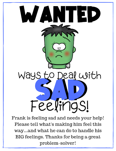 In this non-directive craftivity, kids are given a blank canvas to either write or draw what they think is making Frank sad...and what he can do to deal with it in a helpful way. Simple, easy...yet more powerful than you can imagine. The fun-factor is even upped with the classroom or refrigerator-ready "Wanted Poster" that comes with the resource.